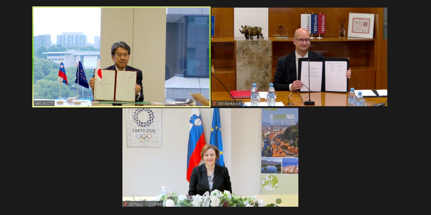 The Japan Bank for International Cooperation (JBIC; Governor: MAEDA Tadashi) signed a memorandum of understanding (MOU) on June 14 with the SID banka, d.d., Ljubljana (SID Bank; President: Damijan Dolinar) in the presence of Her Excellency Dr. Ana Polak Petrič, PhD Ambassador Extraordinary and Plenipotentiary of the Republic of Slovenia, to further strengthen cooperation between the two policy-based public financial institutions, in areas such as digitalization, clean energy, environment and quality infrastructure in Slovenia and third countries.