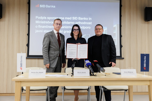 SID banka in Ministrstvo za solidarno prihodnost sta podpisala sporazum o vzpostavitvi novega finančnega mehanizma, namenjenega sistemski podpori gradnji javnih najemnih stanovanj po Sloveniji. Ministrstvo bo v mehanizem letno prispevalo do 25 milijonov evrov, SID banka pa bo ta sredstva kombinirala z lastnimi viri ter financiranjem, pridobljenim na mednarodnih trgih. Na tej osnovi bo oblikovan obsežen program ugodnih posojil z 1‑odstotno fiksno obrestno mero in ročnostjo 30 let.